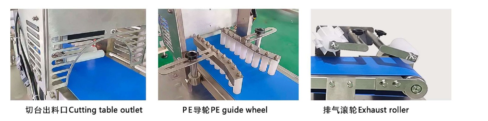 不锈钢结实耐用,蓝色食品级PU带不粘面,安全卫生;